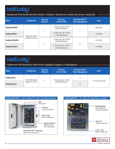 NetWay5PQWP - Outdoor Hardened PoE+ Switch with Network Managment NetWay5BTPL - PoE+ Switch with Integral Power on Backplane
