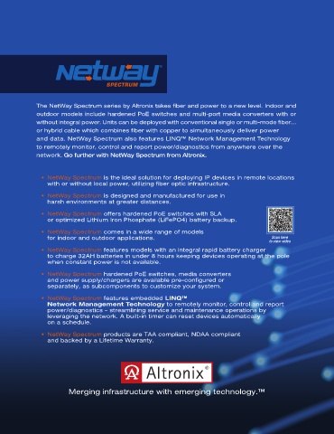 The NetWay Spectrum series by Altronix takes fi ber and power to a new level. Indoor and