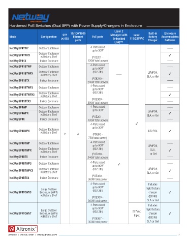 Model Configuration Ethernet PoE ports Battery Accommodates